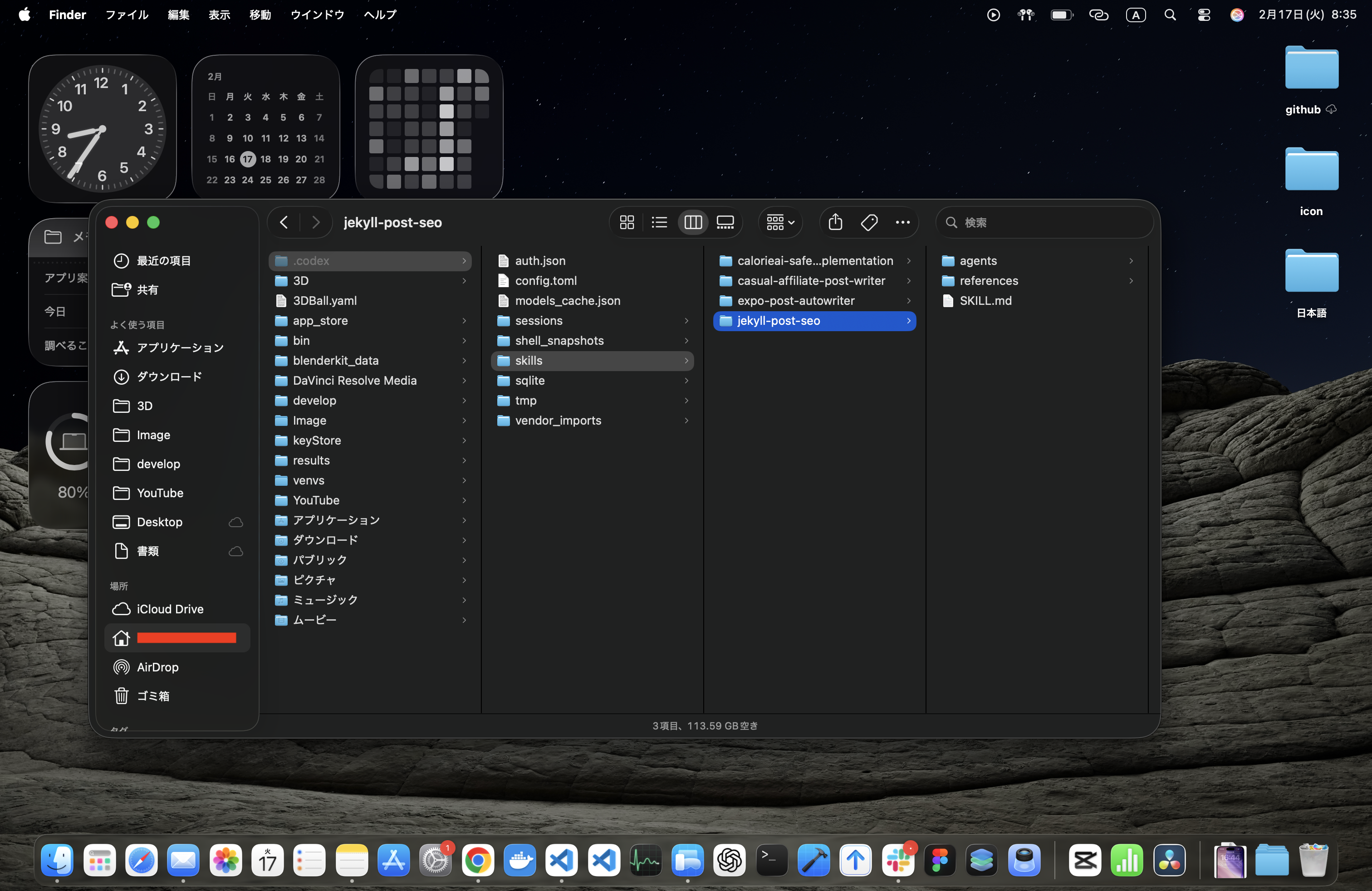ちなみに、skillコマンドはlocalのuser/.codex以下に作成されます。