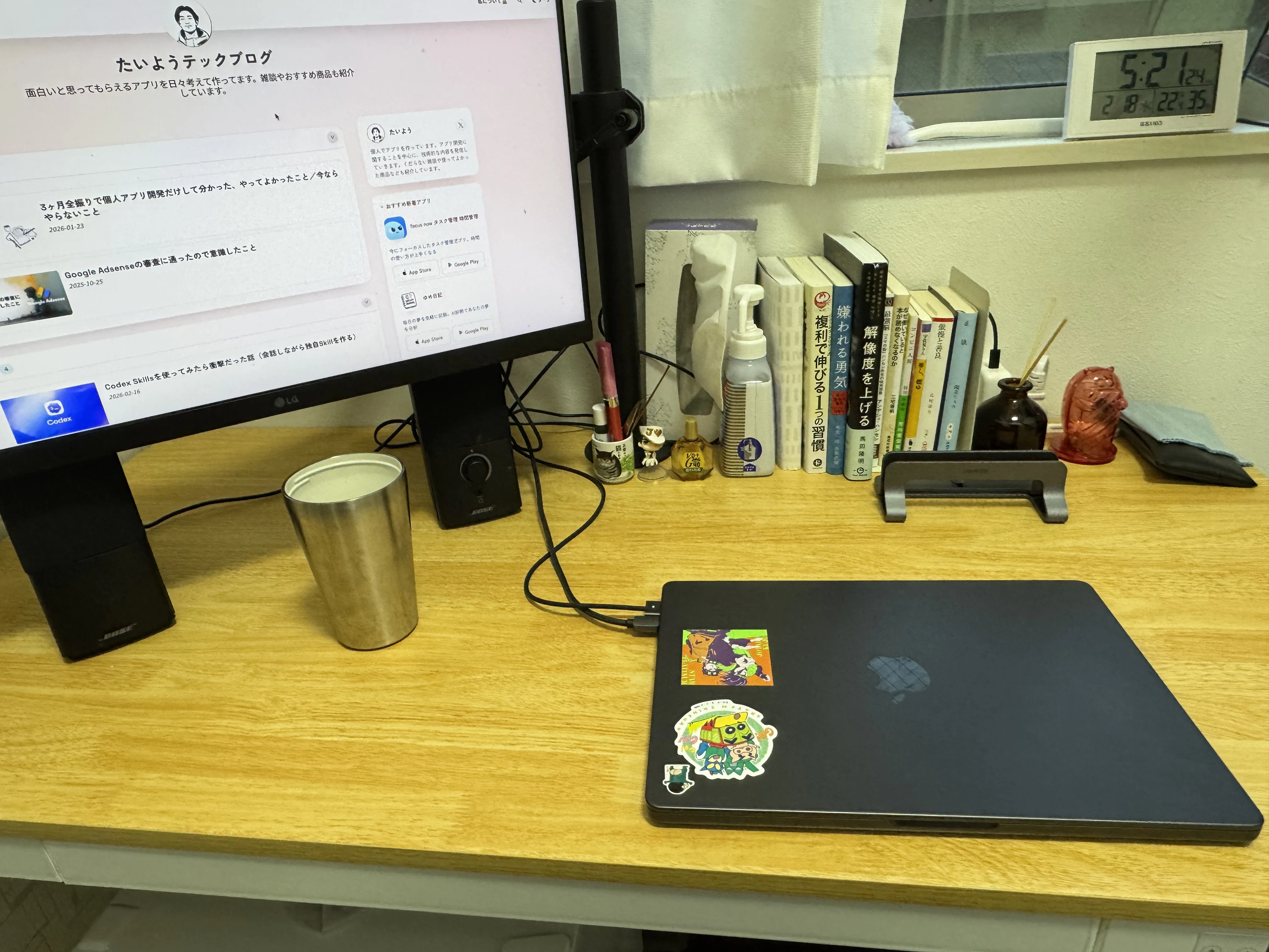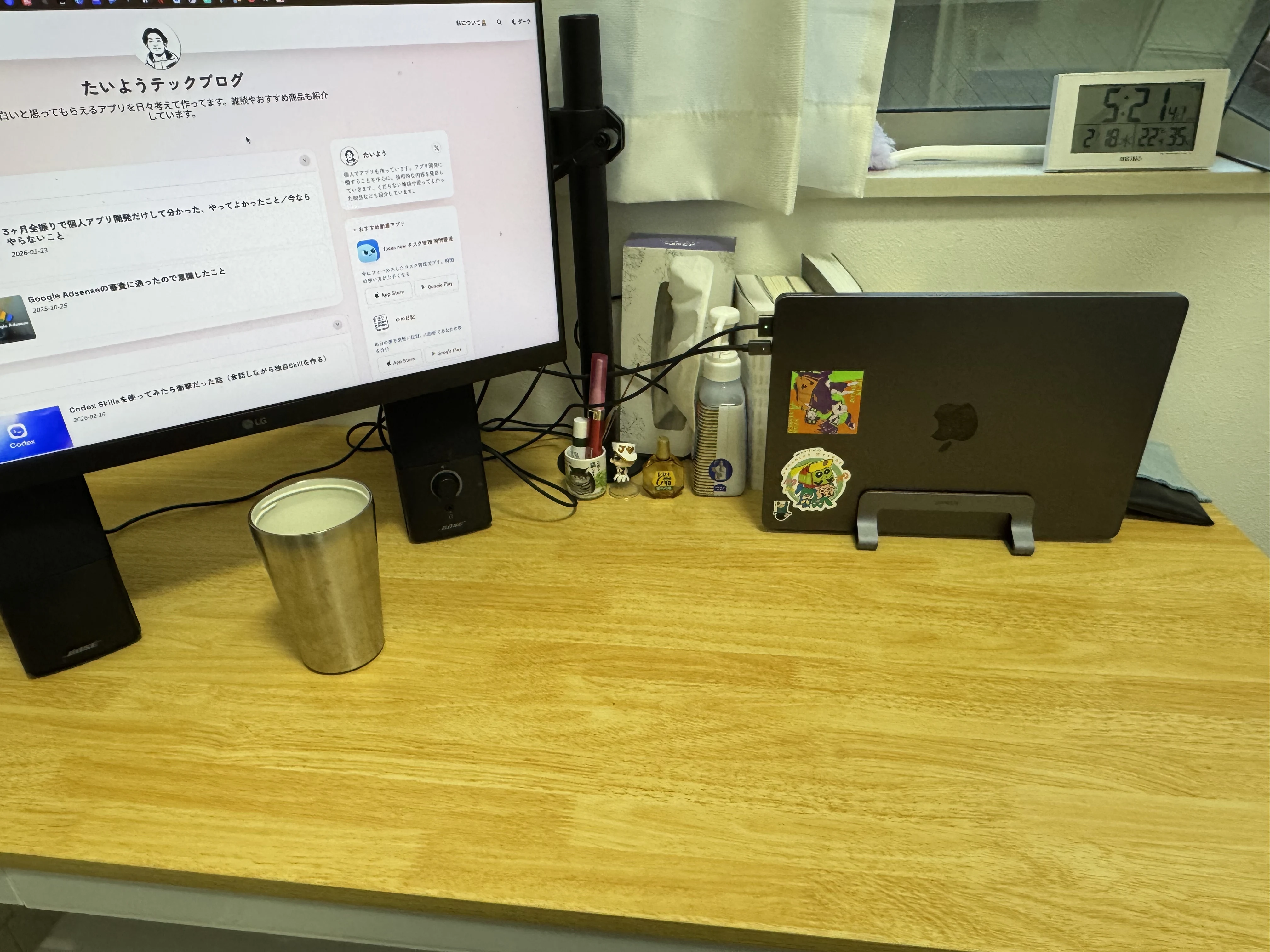 普段はMacBookを開いてそのまま使うことが多いです。